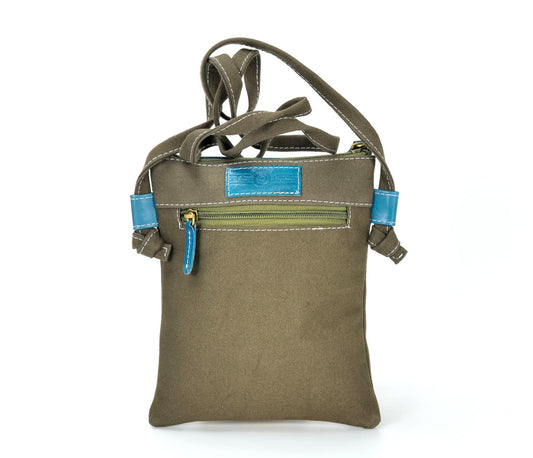Hand Painted Leather and Canvas Hippie Bag - Green Kangaroo