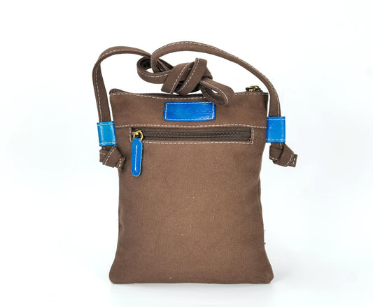 Hand Painted Leather and Canvas Hippie Bag - Brown Kangaroo