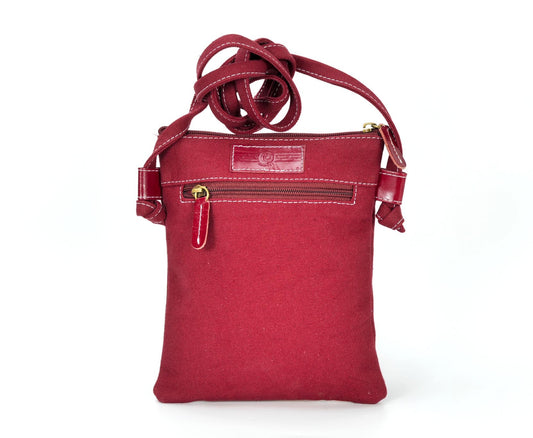 Hand Painted Leather and Canvas Hippie Bag - Maroon Roo
