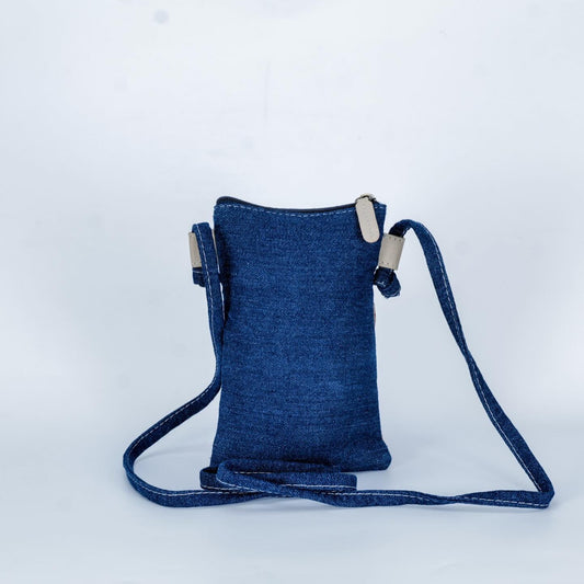 Genuine Leather and Denim Cross Body Bag - Dolphin