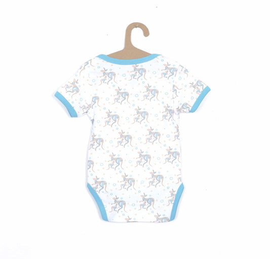 100% Soft Cotton Bio Washed Baby Romper - Blue Roos