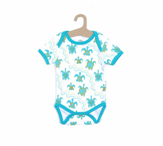 100% Soft Cotton Bio Washed Baby Romper - Aqua Turtles