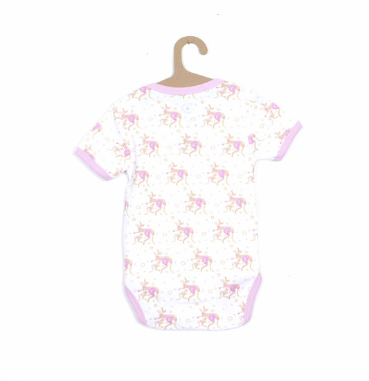 100% Soft Cotton Bio Washed Baby Romper - Pink Roos