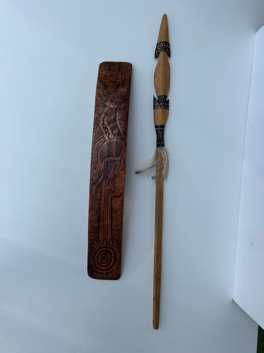 Unique Aboriginal Artefact - Handmade Wooden Shield and Mini Spear