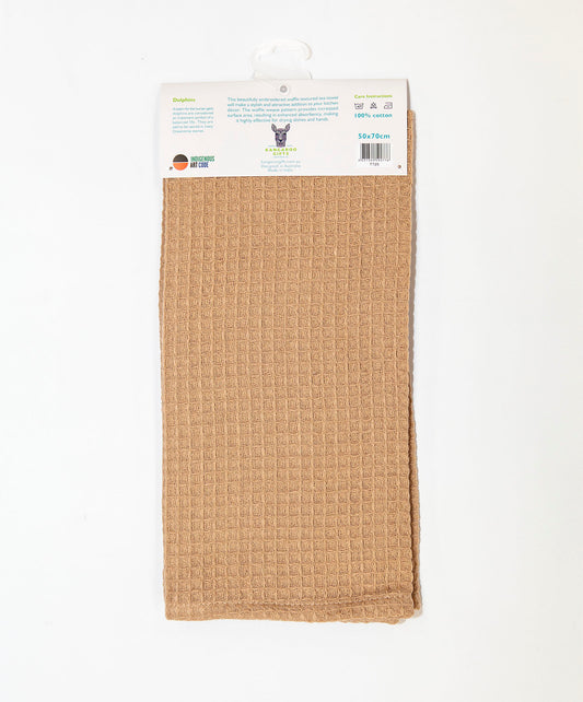 Waffle Cotton Tea Towel Embroidered - Dolphin